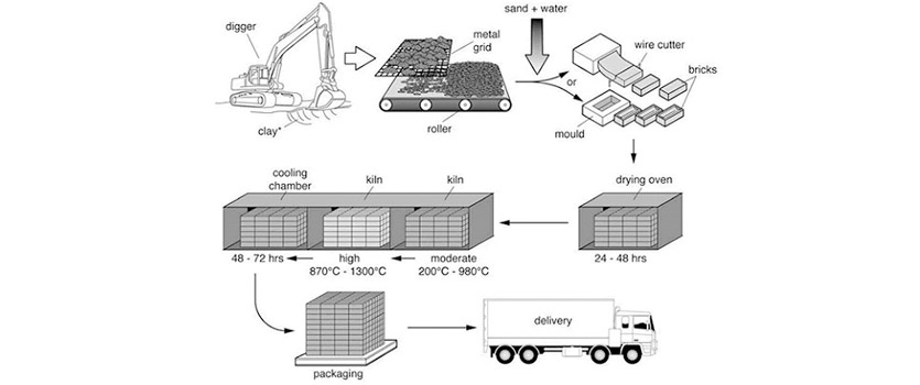 The diagram illustrates the process that is used to manufacture bricks for the building industry.