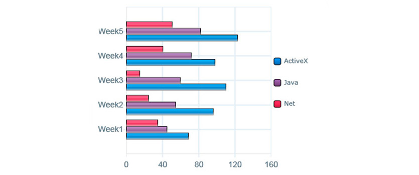 If you look at the chart, you will see that ActiveX and Java have a similar pattern, both steadily increasing over the period (apart from the slight fall of ActiveX in week 4), so these could be put together.